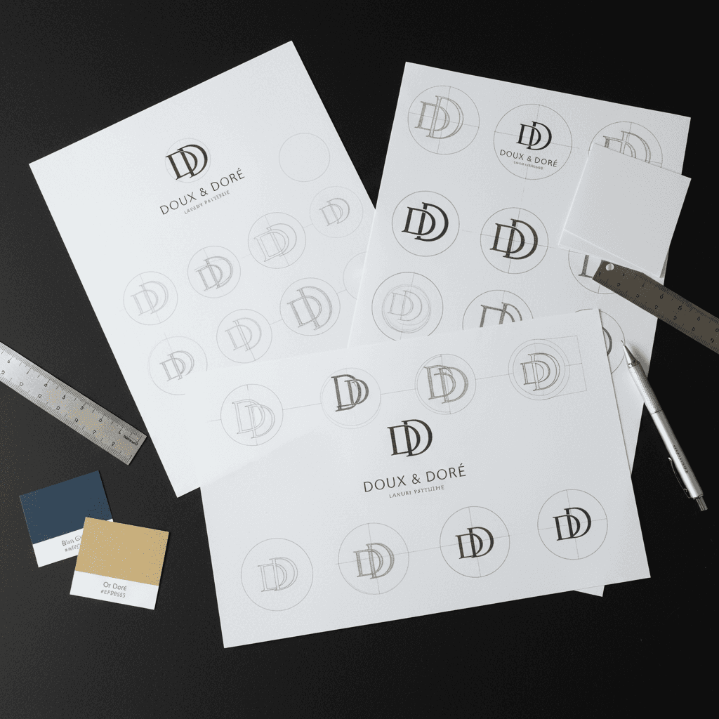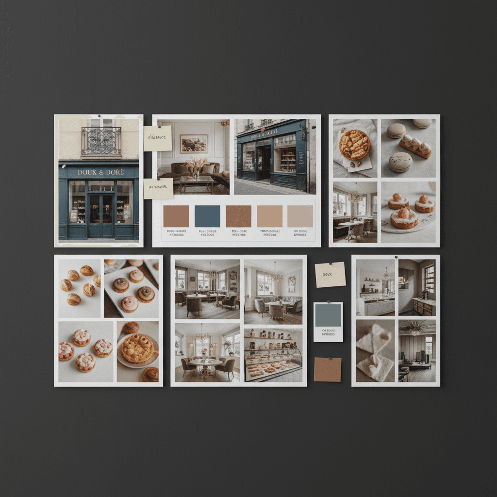 I approached Doux & Doré as a complete brand experience, starting with strategy and then building a visual system that feels both luxurious and warm. The goal was to capture French inspired elegance through a restrained monogram, a soft yet grounded color palette, and packaging that presents each pastry as a curated object.