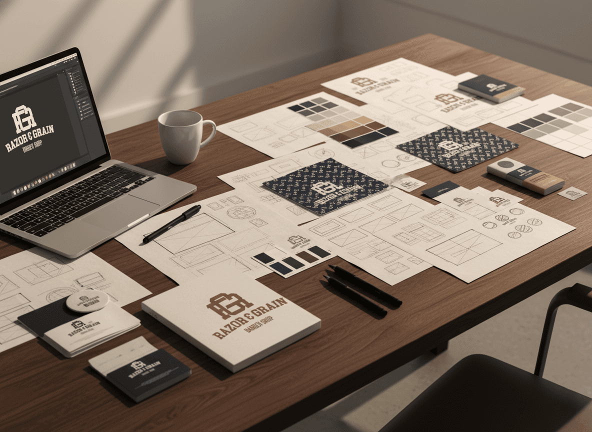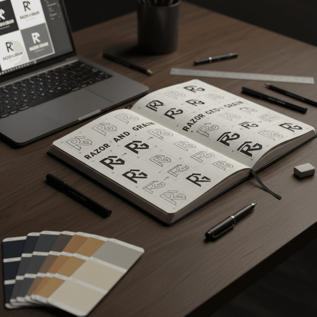 I used a structured, iterative branding process from research and strategy through identity exploration and applied mockups to build a cohesive Razor & Grain system.